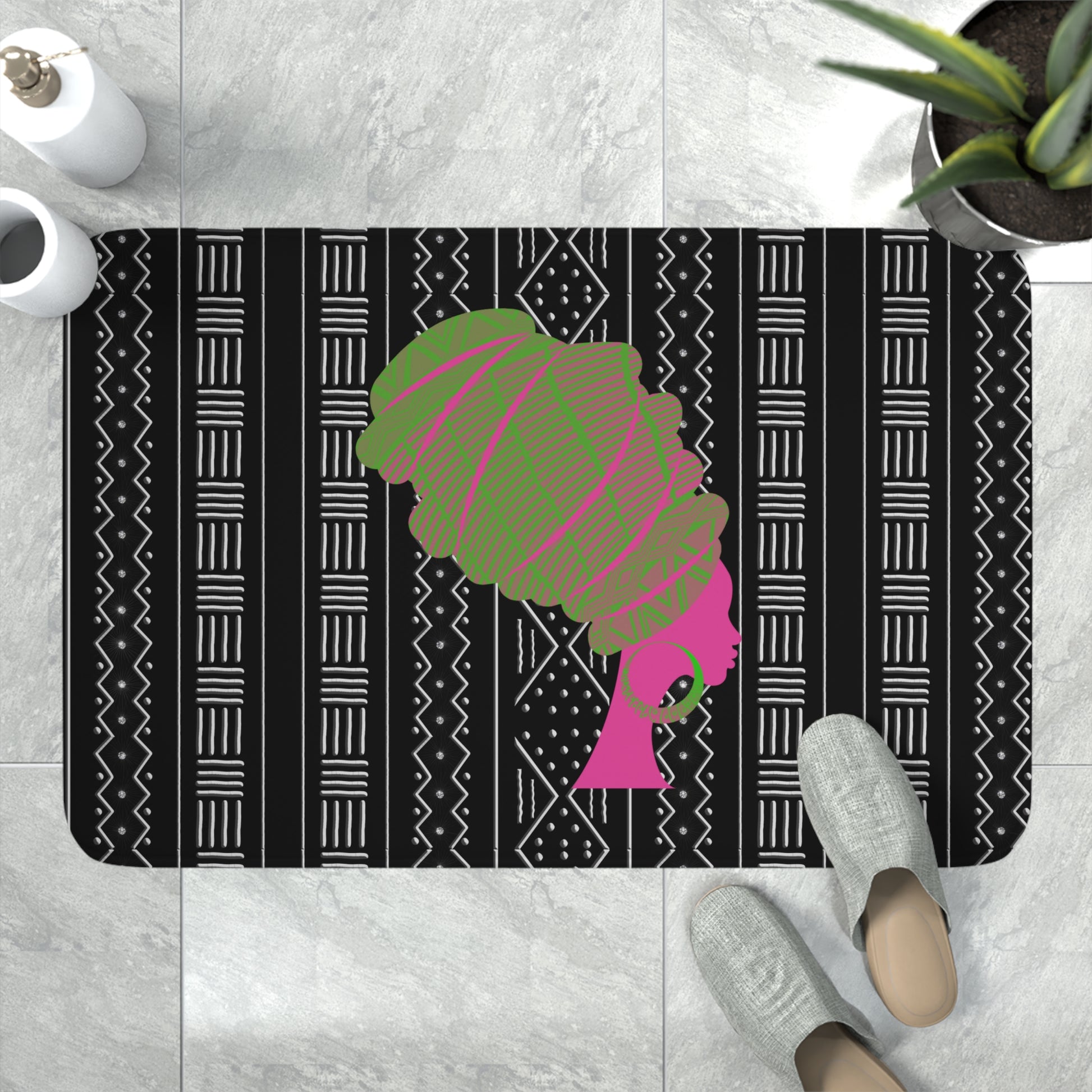 Pink/Green Queen Memory Foam Bath Mat