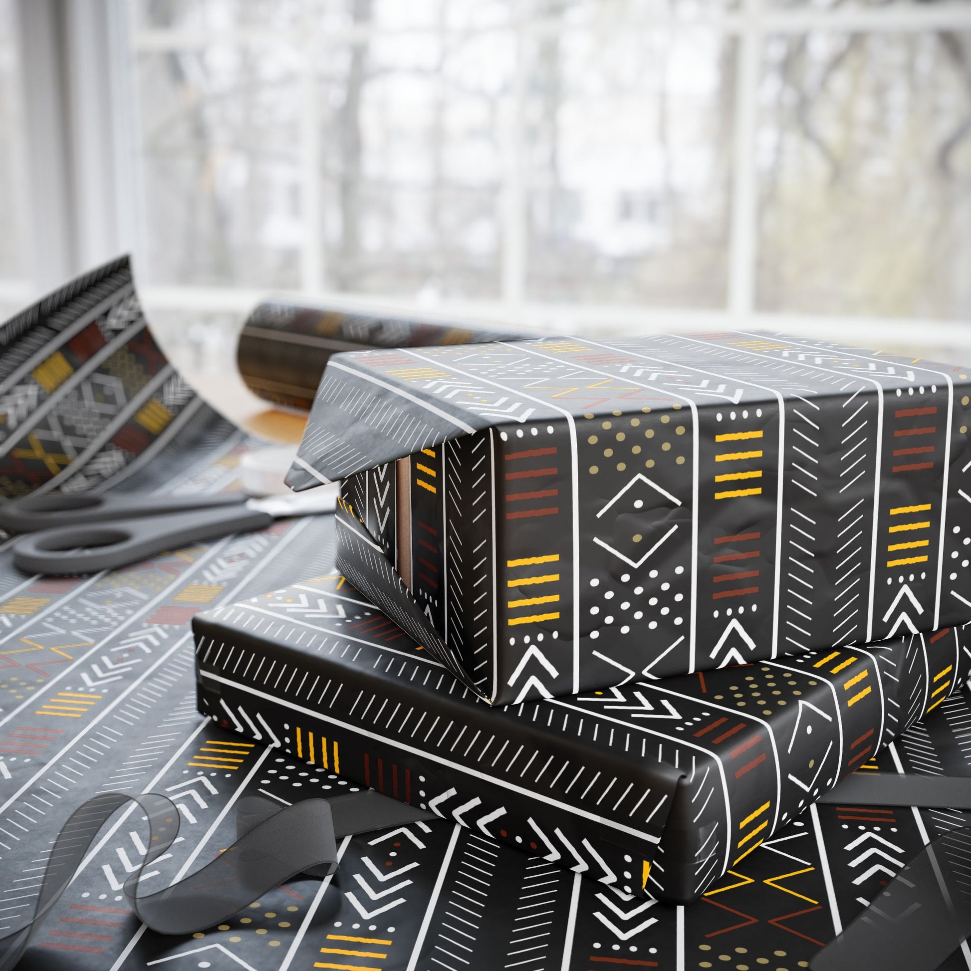 Add a touch of African-inspired style to your gift-giving with our Mudcloth Inspired Wrapping Papers. The bold and intricate designs on this Afrocentric wrapping paper are perfect for those who appreciate unique cultural influences. Ideal for celebrations and occasions where you want your gifts to stand out.